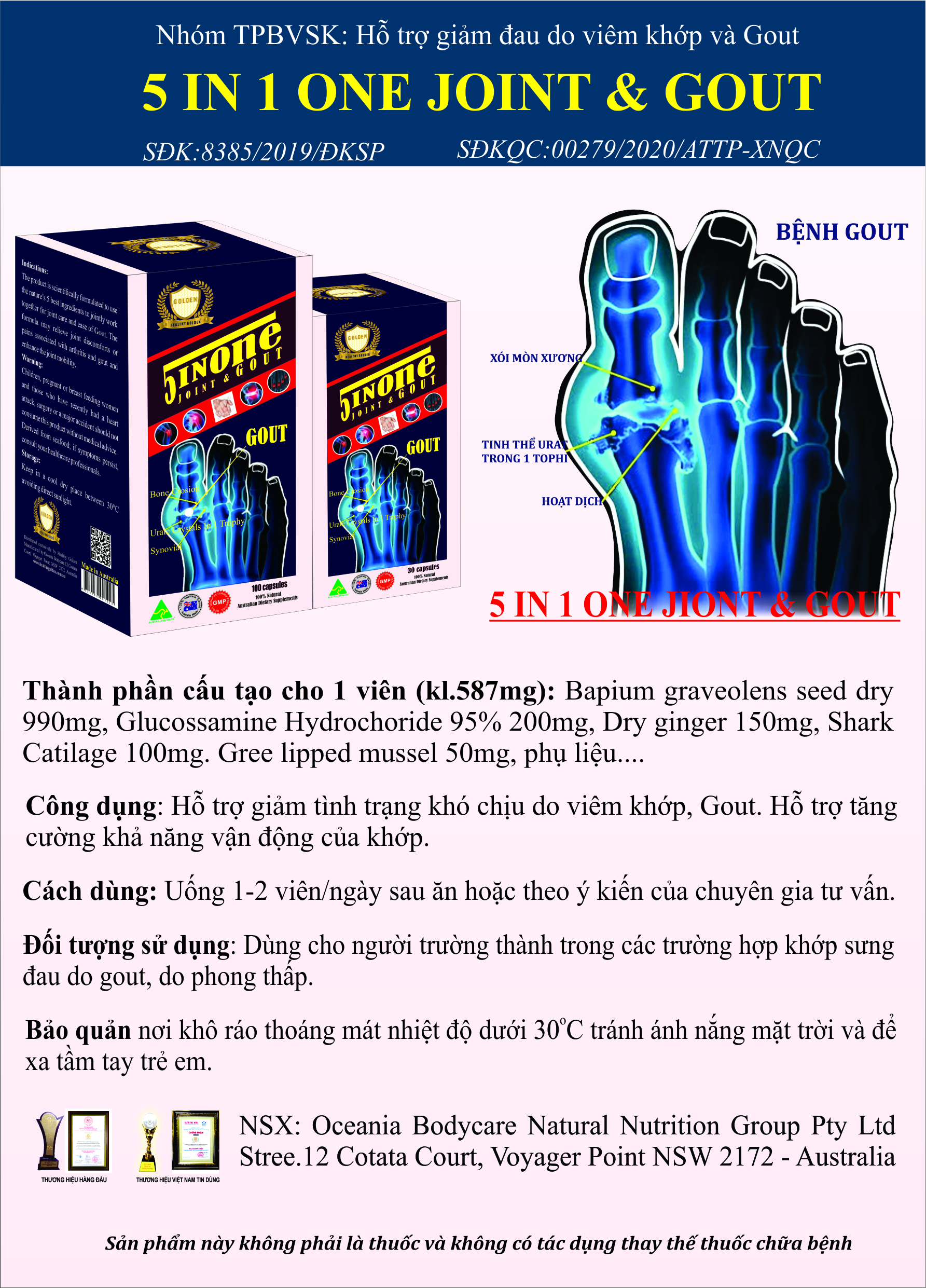 TPBVSK: Hỗ trợ giảm tình trạng khó chịu đau do viêm khớp, Gout. Hỗ trợ tăng cường khả năng vận động của khớp